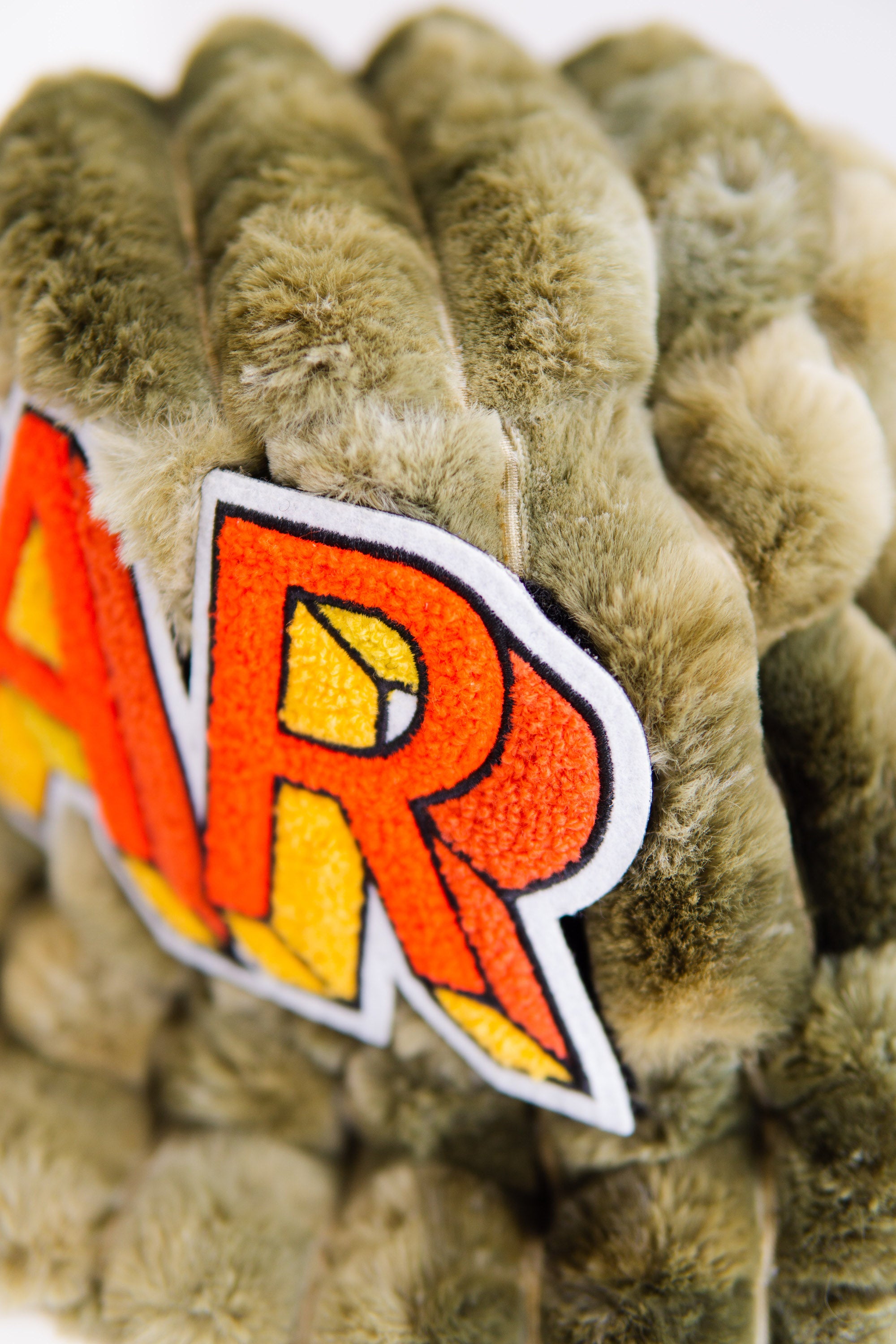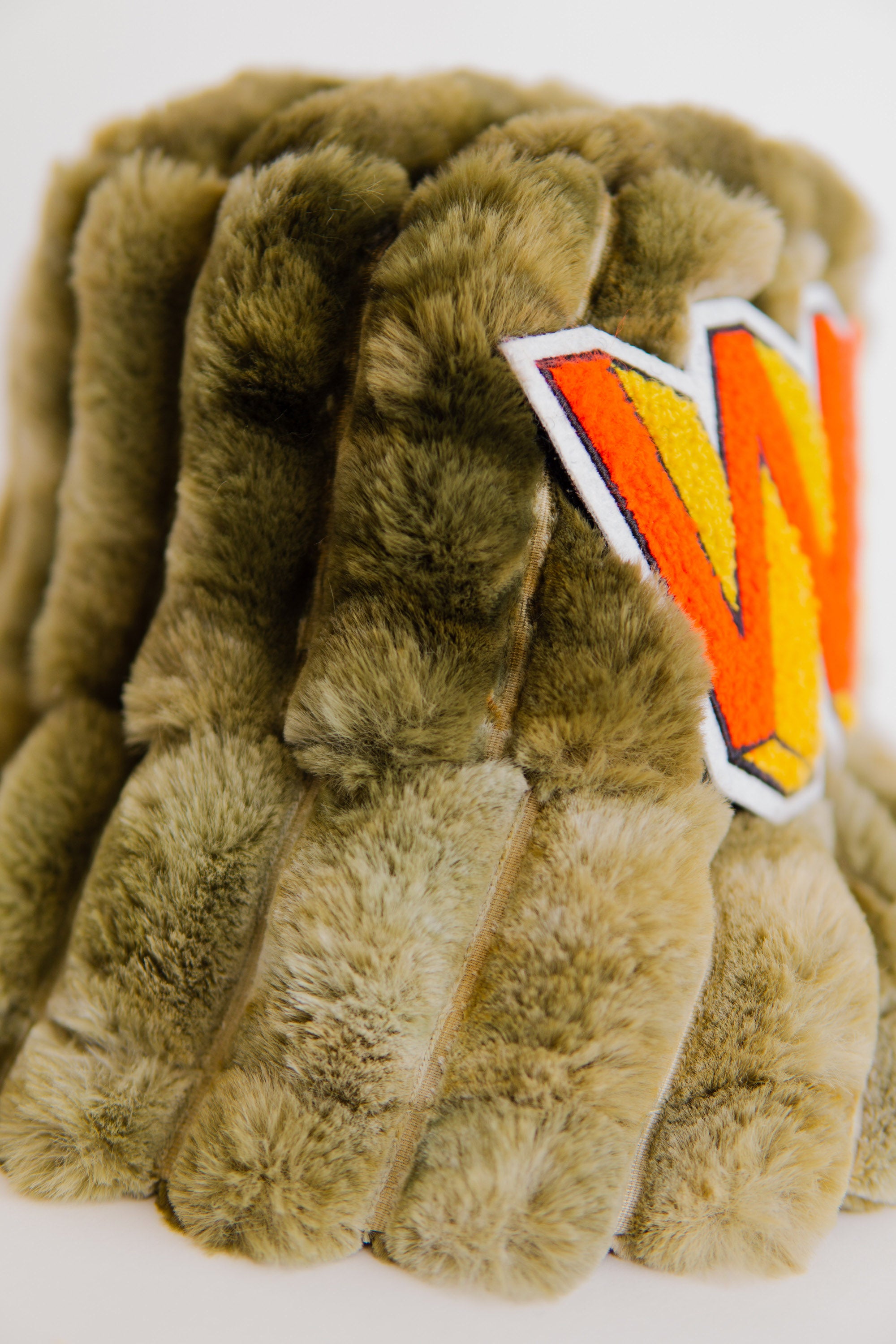 Inspired by the internal WAR between evolution and old learned behaviors rooted in fear and oppression the A Universe WAR Modular hat features a 9 in chenille embroidered Velcro patch embellished against a plush faux fur bucket. The hat has circumference of 22 inches and has an adjustable draw strings.